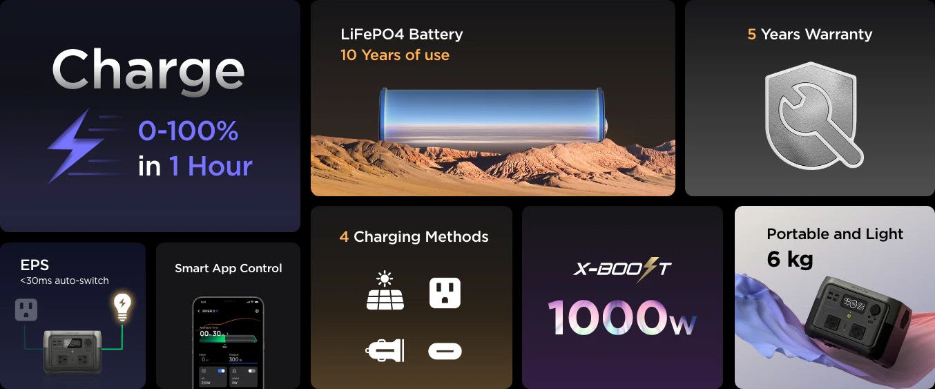 RIVER 2 Max slår industristandarden for ladehastighet, fullades på kun 60 minutter. Det er 5 ganger raskere enn andre portable kraftstasjoner på markedet og 38% raskere en tidligere versjoner.