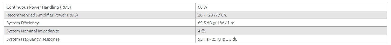- Forsterker: 20W - 120W. 75-100W kontinuerlig effekt pr kanal anbefales.