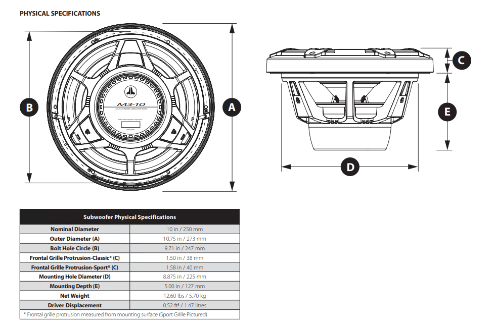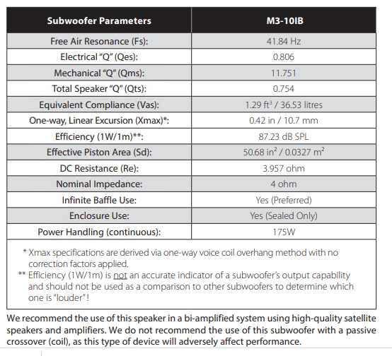 JL AUDIO M3-10ib-Mi Subwoofer 10" 175W Grå Grill