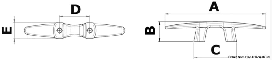 Mål: A: 250 mm B: 50 mm C: 106,5 mm D: 75 mm E: 40,5 mm Bolt: 12 mm