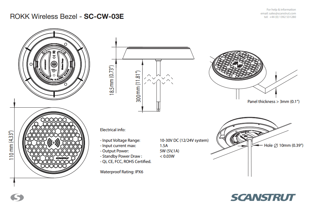 Rokk trådløs Qi mobillader overflate IPX6 12/24V